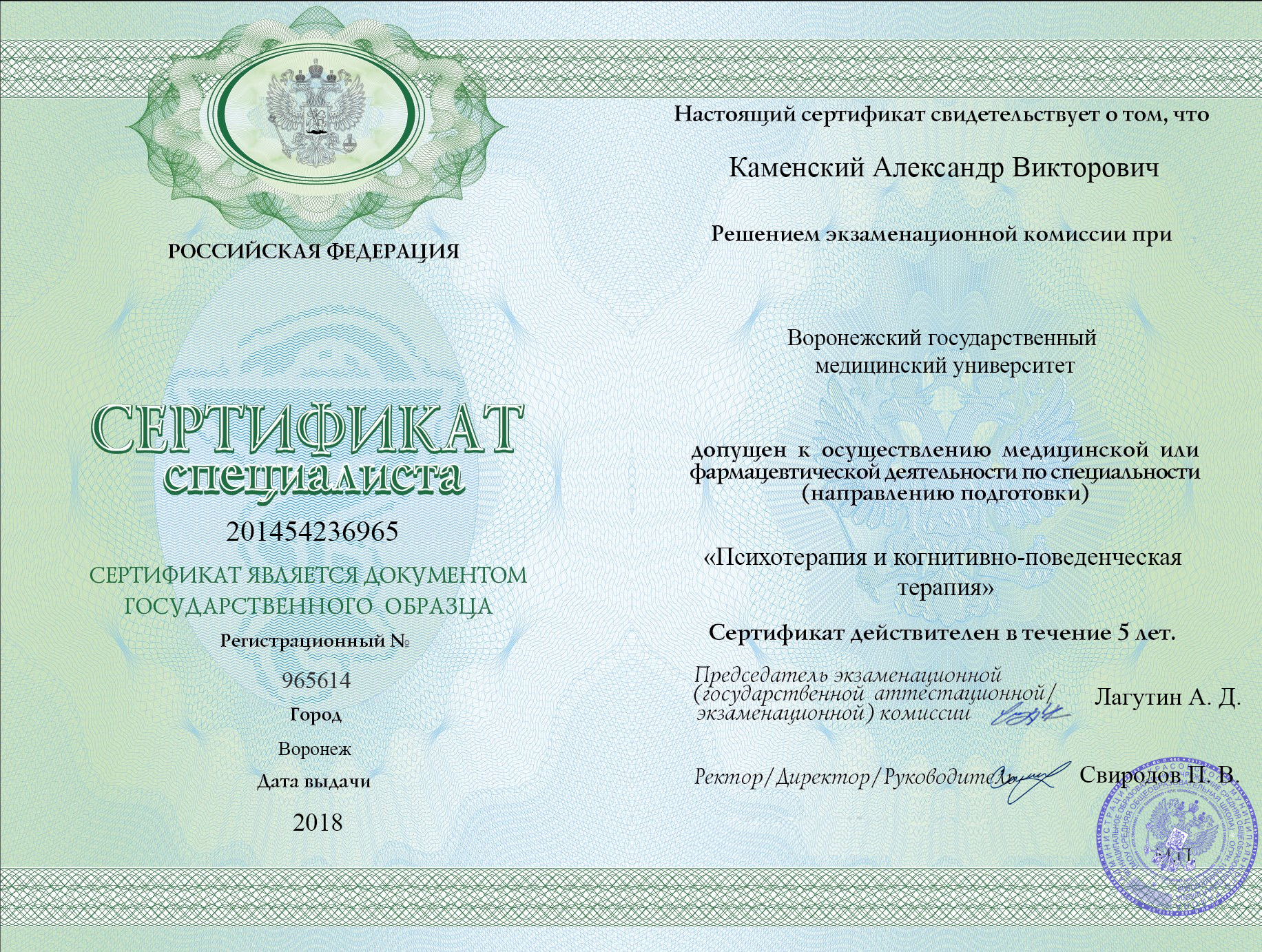 Врач-психотерапевт Каменский Александр Викторович в Центр здоровье в Воронеже Врач-психотерапевт Каменский Александр Викторович
